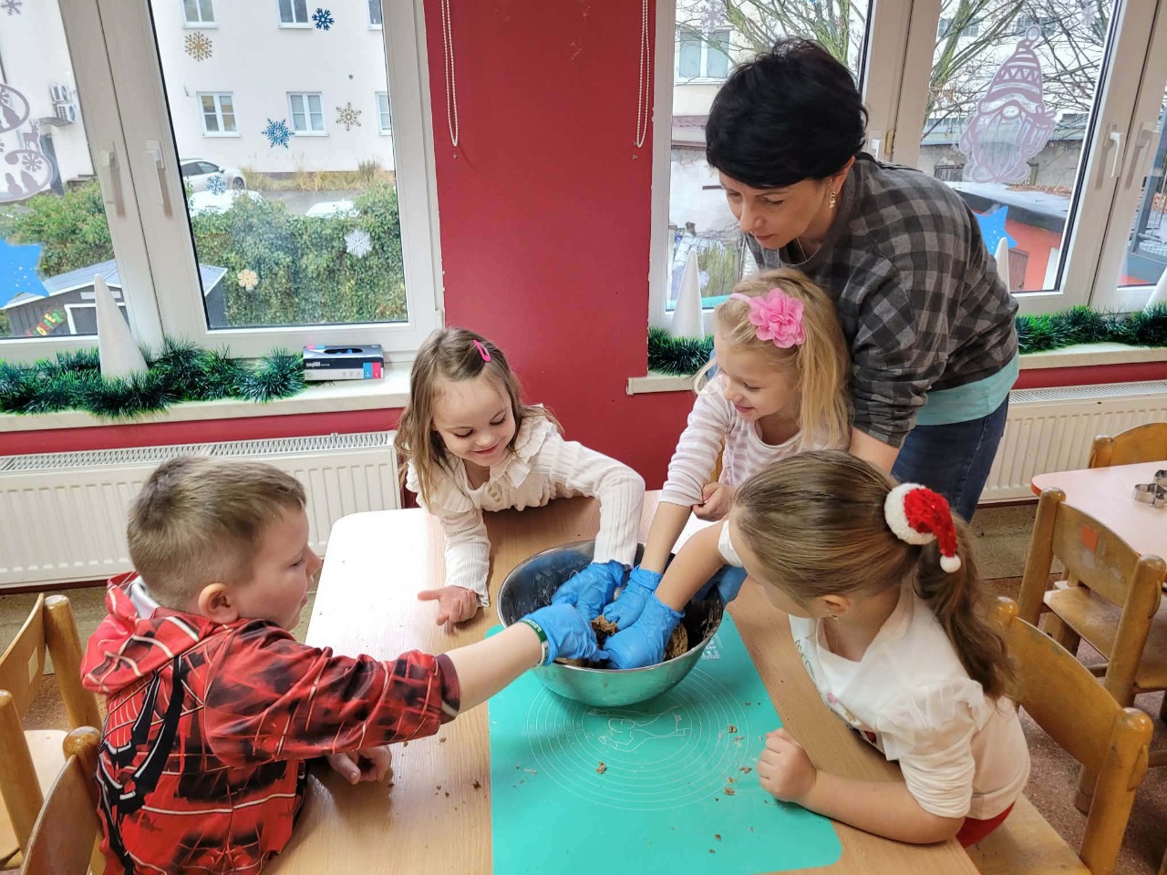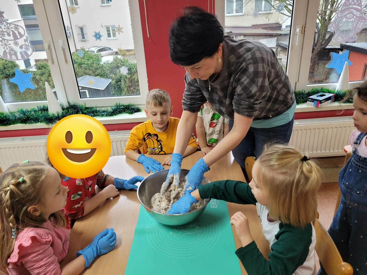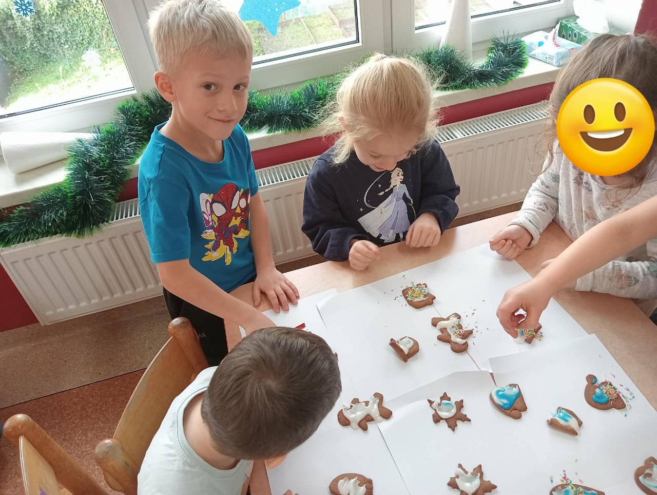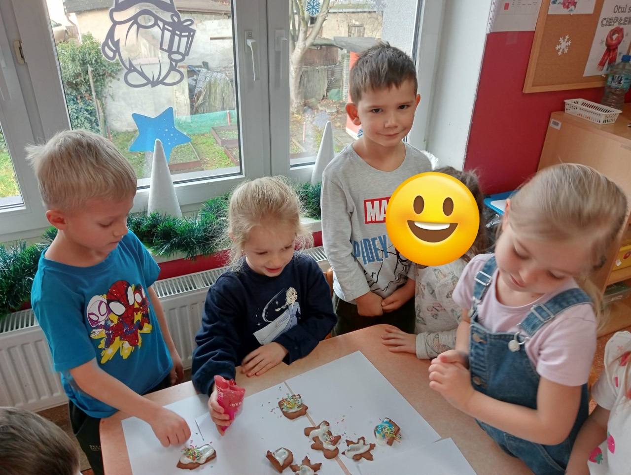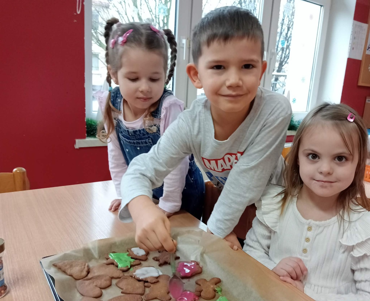 Grupa "Pszczółek" w przedświątecznym czasie przygotowała pierniczki. Dzieci ugniatały ciasto, wycinały przeróżne formy oraz dekorowały ciastka. Przepiękny zapach piernikowy unosił się w sali III grupy.