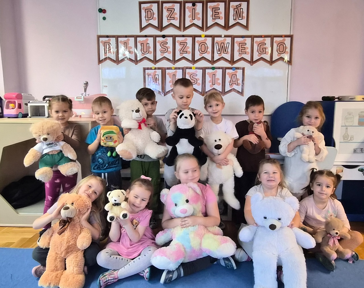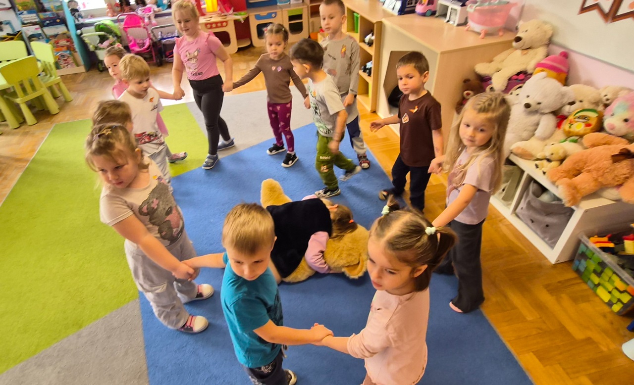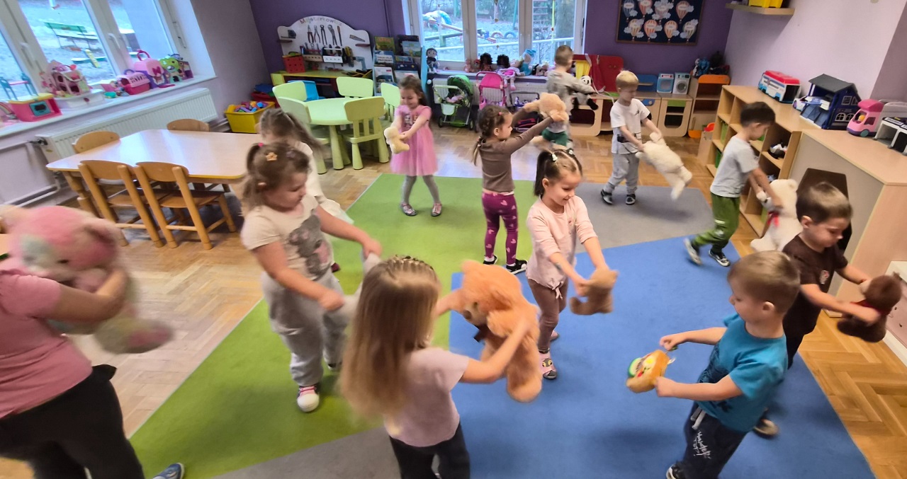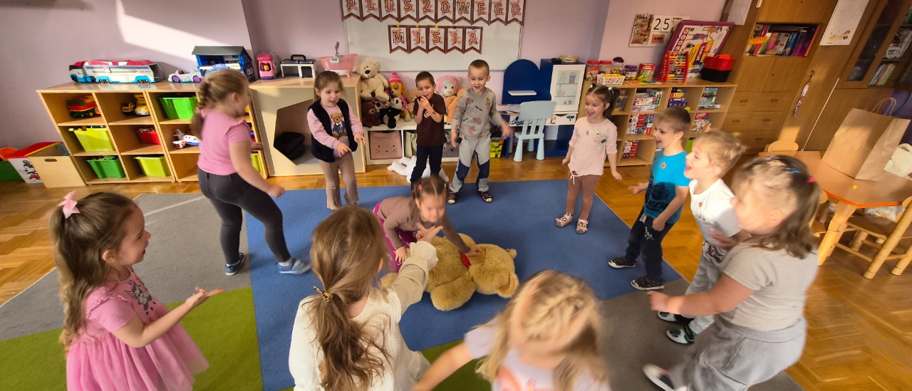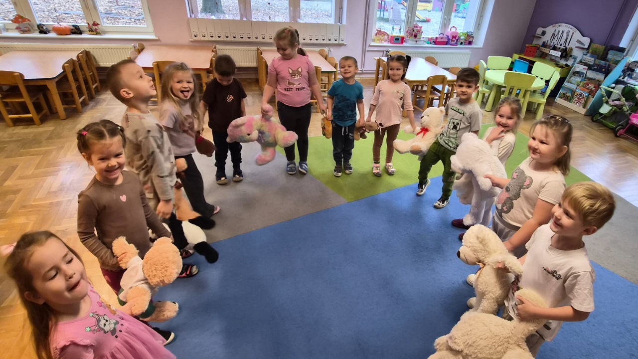 Pluszowy miś to najlepszy przyjaciel każdego dziecka, ukochana maskotka na dobre i złe chwile. Można go przytulić, a nawet powiedzieć mu o czymś bardzo ważnym. Z tej okazji w dniu 25.11.2025 r. przedszkolaki z naszego przedszkola uczestniczyły w obchodach "Światowego Dnia Pluszowego Misia". Każde dziecko przyszło do przedszkola ze swoim "milutkim przyjacielem". Można było zobaczyć misie małe, średnie, duże, brązowe, różowe, białe itd. Wszystkie były śliczne i wyjątkowe. Zostały zaproszone do wspólnej zabawy ze swoimi misiami, poznały również historię ich święta i bawiły się do znanych misiowych przebojów. Ten wyjątkowy dzień był pełen uśmiechu i świetnej zabawy. Dzieci były szczęśliwie, iż mogły spędzić tyle czasu ze swoimi pluszowymi ulubieńcami oraz pokazać ich swoim koleżankom i kolegom z grupy.